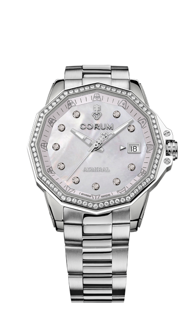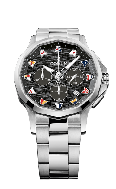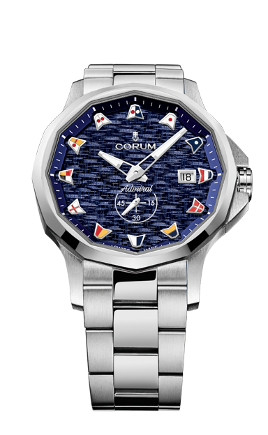This Admiral 38 contemporary line embraces the design identity of the iconic Admiral collection born 60 years ago with its instantly recognizable 12-sided case and nautical pennants on the dial.